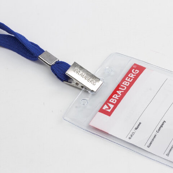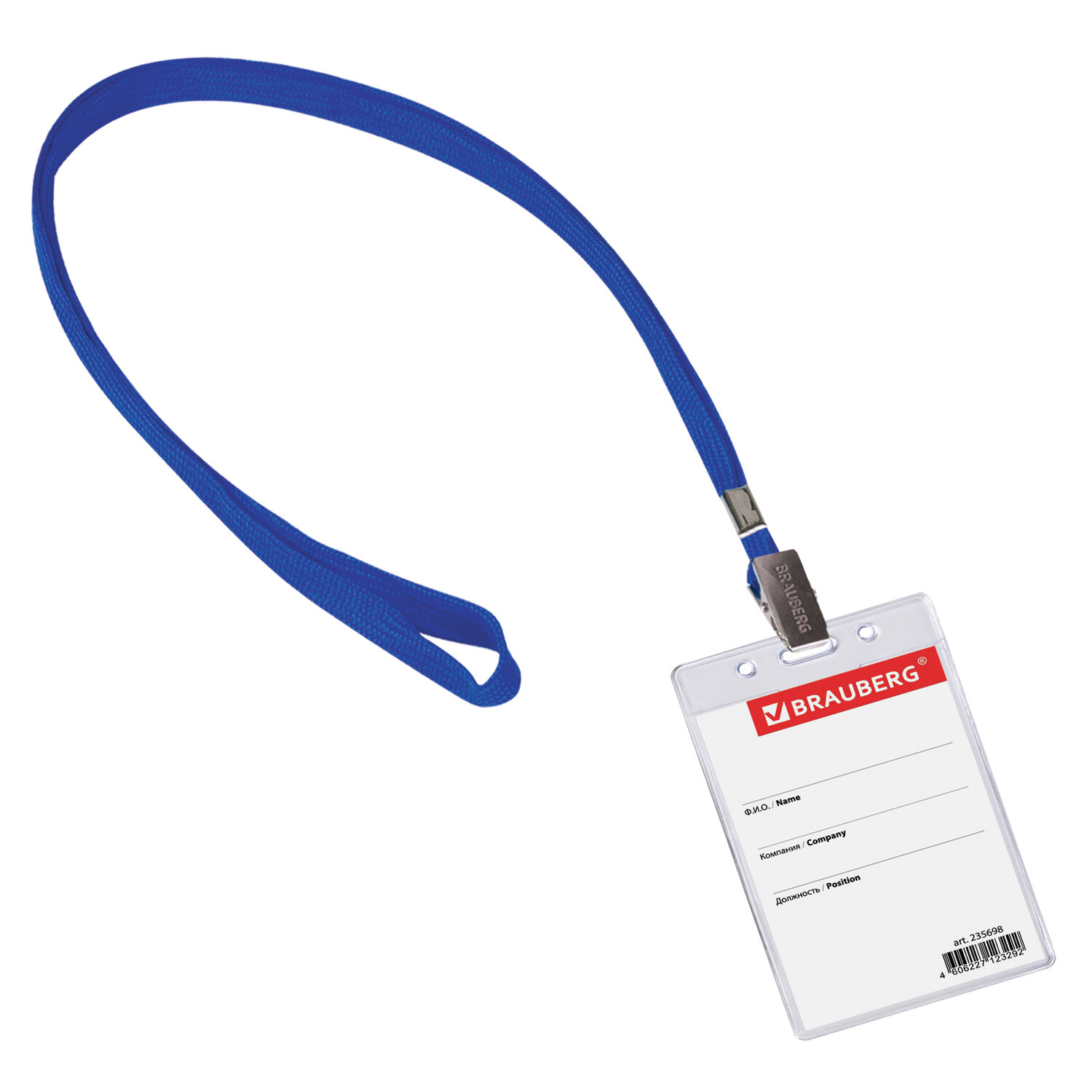 - нагрудная этикетка (бейдж) Brauberg вертикальный 60*90 на синем шнурке 235698