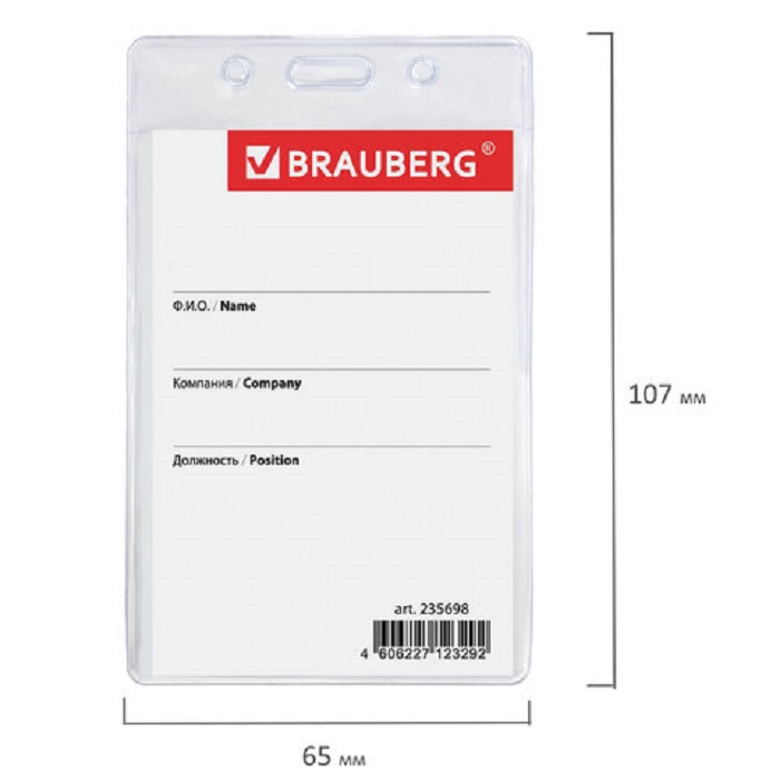 Вертикальный бейдж BRAUBERG для именной карточки предназначен для идентификации сотрудников в компаниях, а также на семинарах, тренингах, презентациях и других мероприятиях.