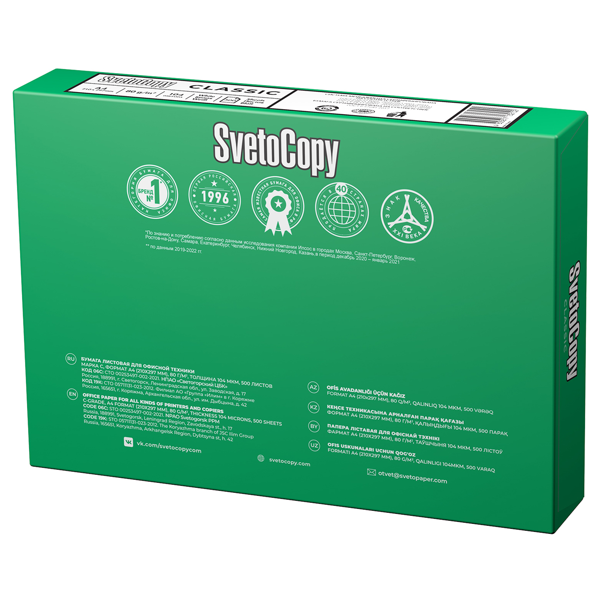 - бумага ксер. A4 Sveto Copy 80 гр./кв. м. 500 л.
