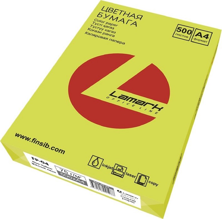 - бумага А4 облаг. желтый неон 500 л.75 гр./кв. м Lamark FP-04