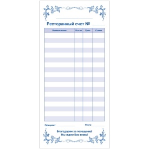 бланк самокопирующийся Ресторанный счет OfficeSpace 97*200 мм 2-сл. 50 экз. 249795