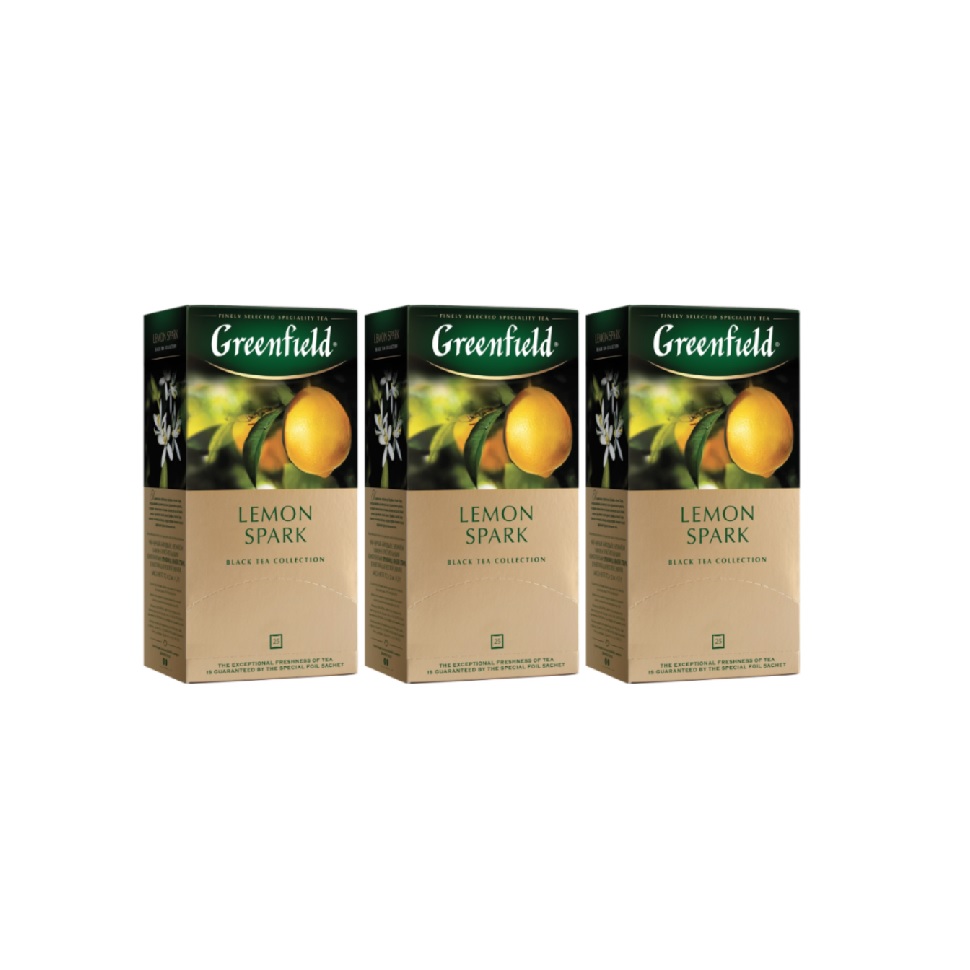 Цейлонский черный чай с сочным лимоном Greenfield Lemon Spark. Расфасован в бумажные пакетики, имеющие упаковку из фольги. Чай поставляется в картонной коробке, 25 пакетиков. Черный чай обладает насыщенным вкусом с легким освежающим ароматом лимонных нот. Вес 50 г.