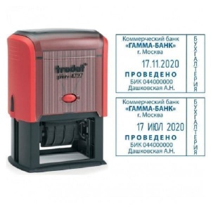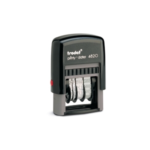 Датер Trodat 4820 РУС имеет: прочный пластмассовый корпус с автоматическим окрашиванием клише, колесики прокрутки для комфортной и быстрой смены даты, сменную штемпельную подушку 6/4911 синего цвета. Краска на водной основе. Датер подходит для ежедневного использования. Обеспечивает качественные четкие оттиски.