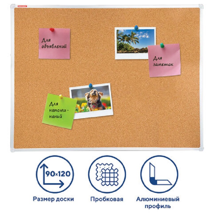 Пробковая доска BRAUBERG позволит разместить объявления при помощи кнопок и офисных булавок. Широко используется в организациях различного рода деятельности.