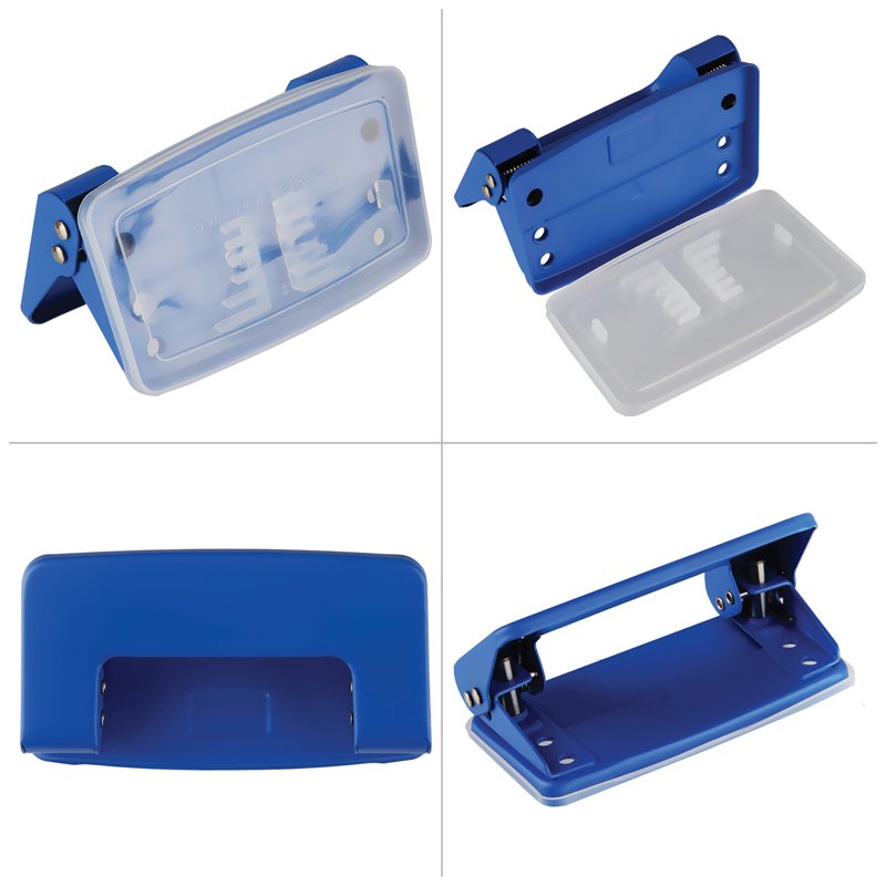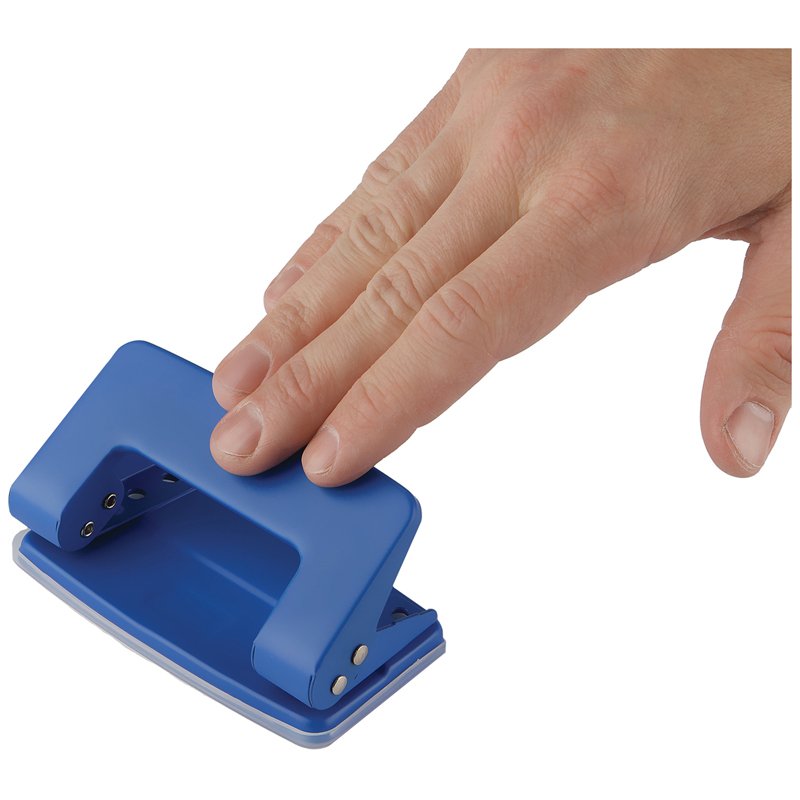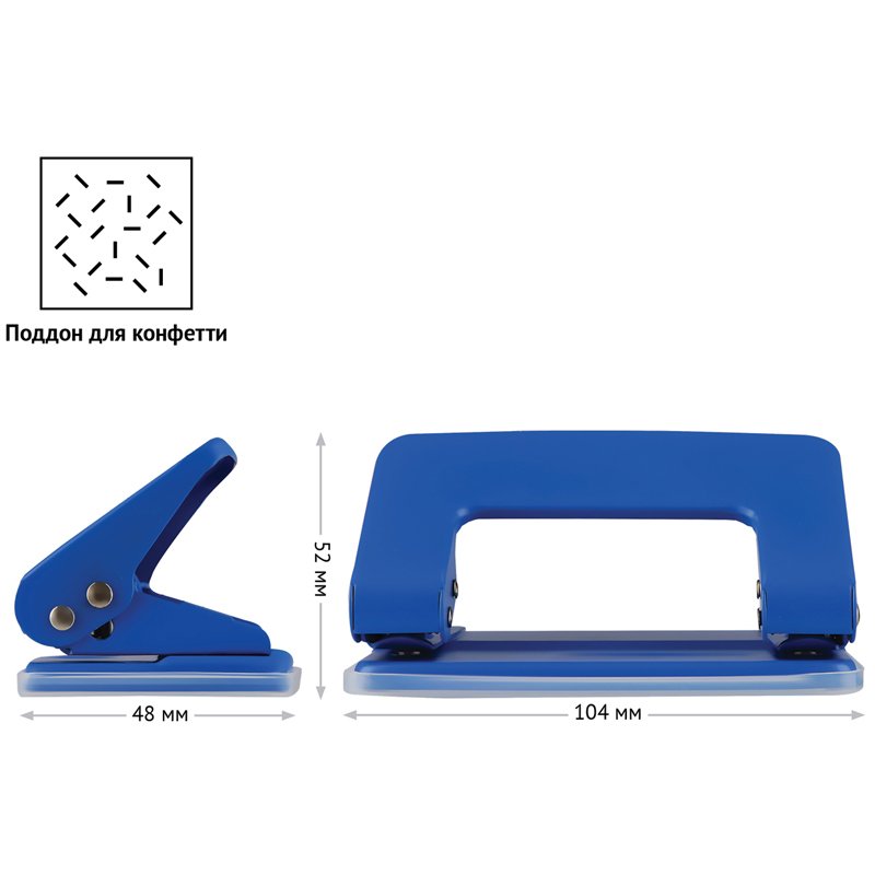 Дырокол DOLCE COSTO металлический, на два отверстия диаметром 6 мм, с расстоянием 80 мм между ними, пробивает до 10 листов. Удобный пластиковый контейнер легко открывается, исключая рассыпание конфетти. Цвет синий. Поставляется в цветной картонной коробке.