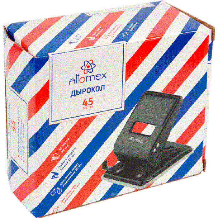 Дырокол "Attomex" (45 листов) металлический, с линейкой, в картонной коробке, черный