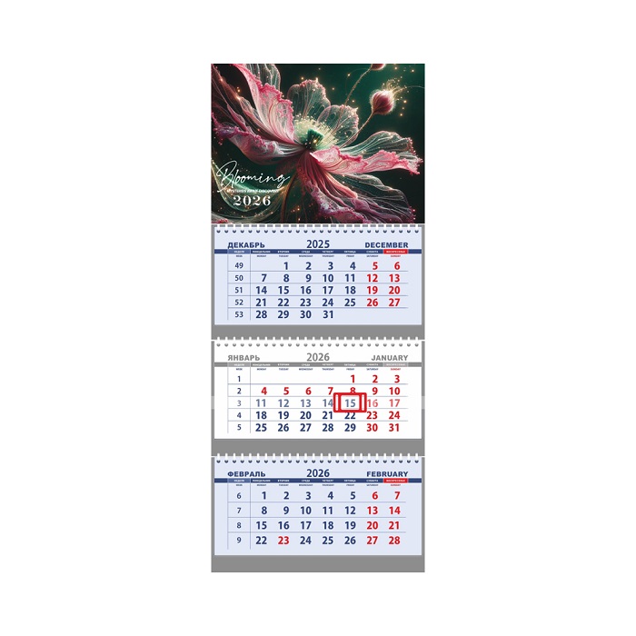 - календарь кварт. на гребне с бегунком 3-блоч. 2026 г Attomex Blooming 2133541