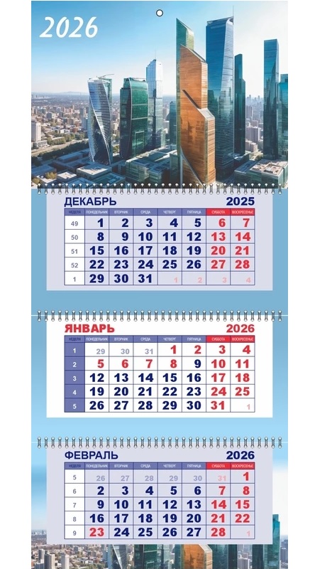 - календарь кварт. на гребне с бегунком 3-блоч. 2026 г Lamark Москва Сити 91743