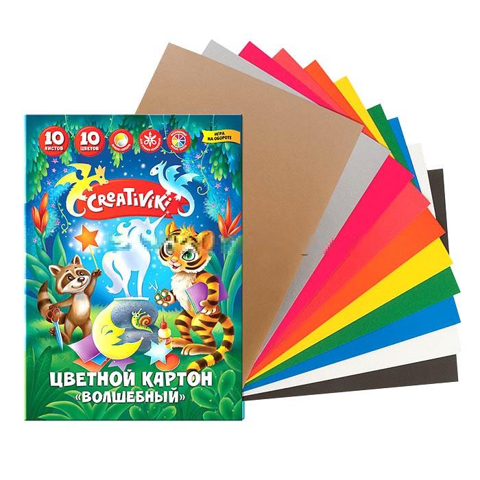 - картон цветной А4 10 л. 10 цв. Creativiki волш. КЦВ10Л10ЦКР