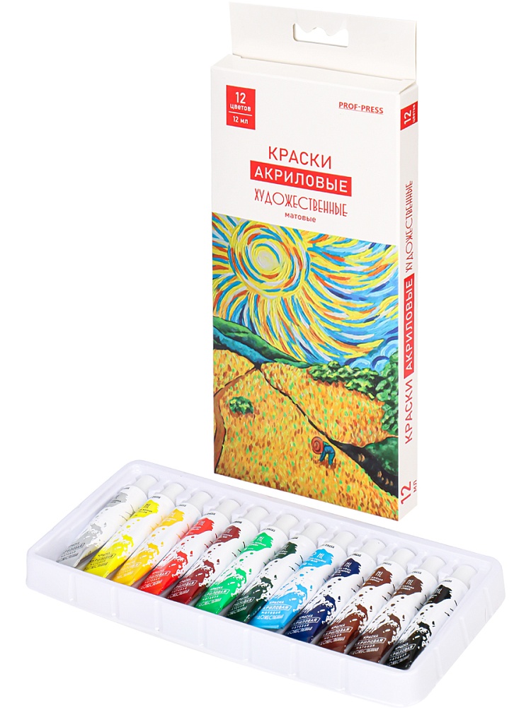 - краски акриловые 12 цв. Prof-Press 12 мл. в алюм.тубе АК-9494