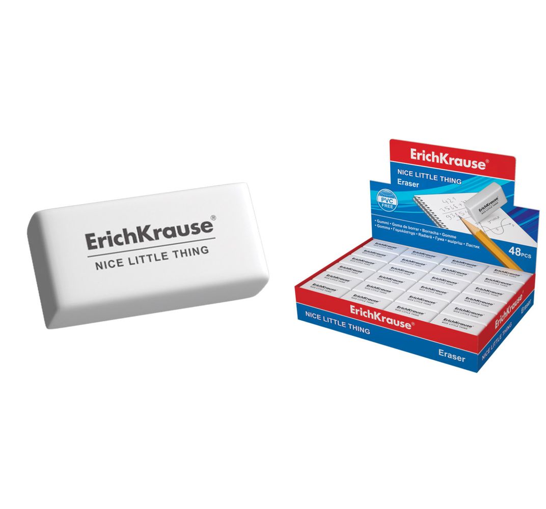 Мягкий ластик классической формы из современного, экологически чистого и гипоаллергенного материала термопластичной резины (TPR) с пониженным образованием крошек (Dust free). Не содержит ПВХ. Размер 40 х 19 х 15 мм.