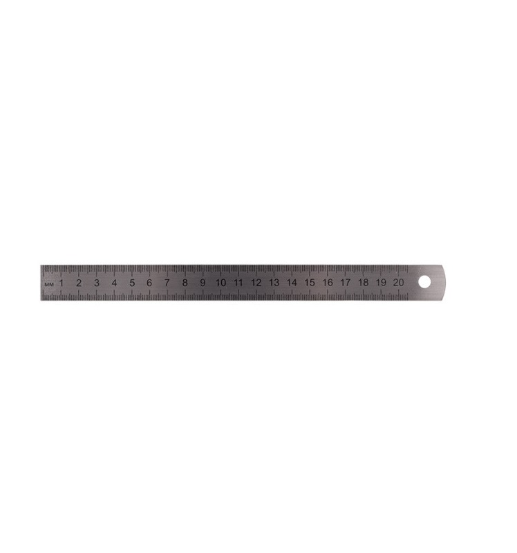 Прочная линейка из стали покрыта антикоррозийным слоем. Используется для выполнения чертежных работ. Продается в индивидуальной упаковке. Длина шкалы - 20 см.