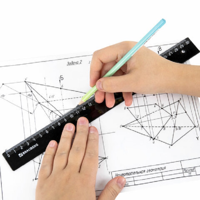 Линейка BRAUBERG предназначена для чертёжных и измерительных работ.