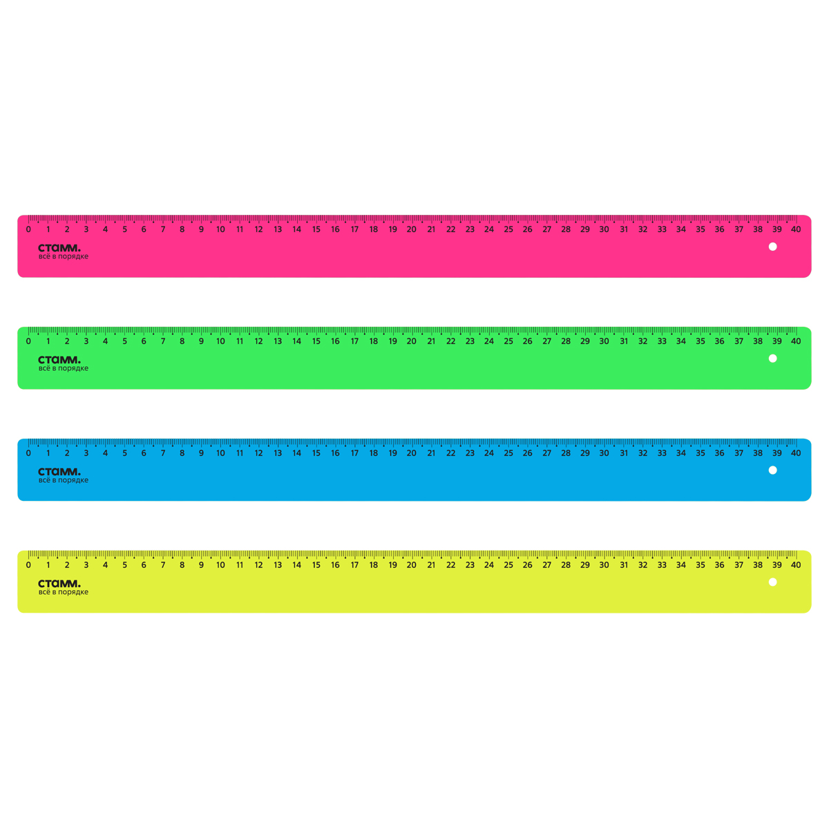 - линейка пластиковая Стамм 40 см неон. цвета 31437