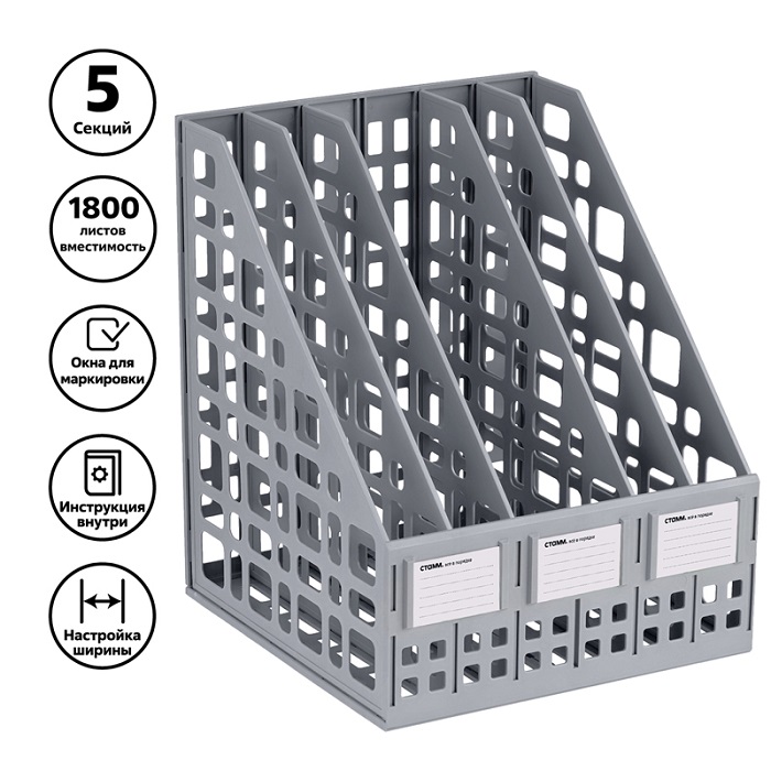 подставка для бумаг 5 отделений сборная Стамм серый ЛТВ-63723