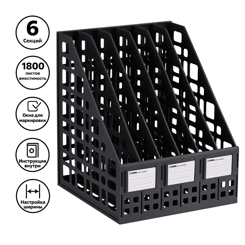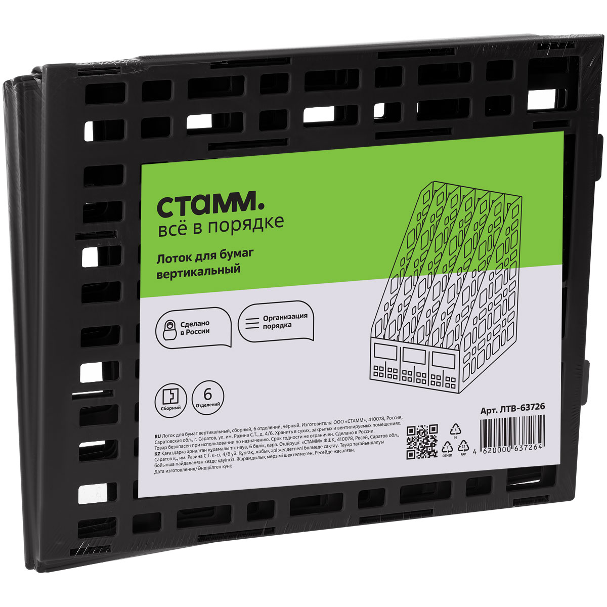 - подставка для бумаг 6 отделений сборная Стамм черный ЛТВ-63726
