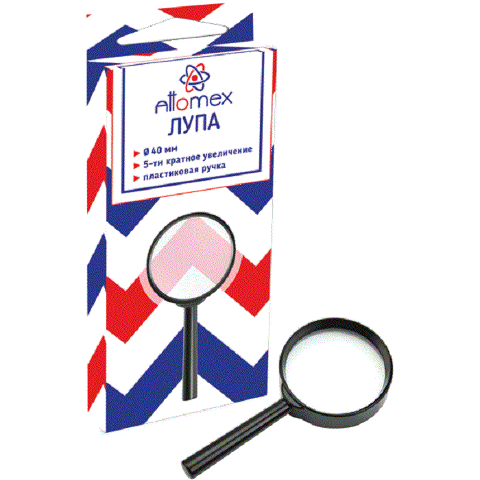 Лупа "Attomex" с пятикратным увеличением d=40 мм, в картонной коробке с блистерным подвесом