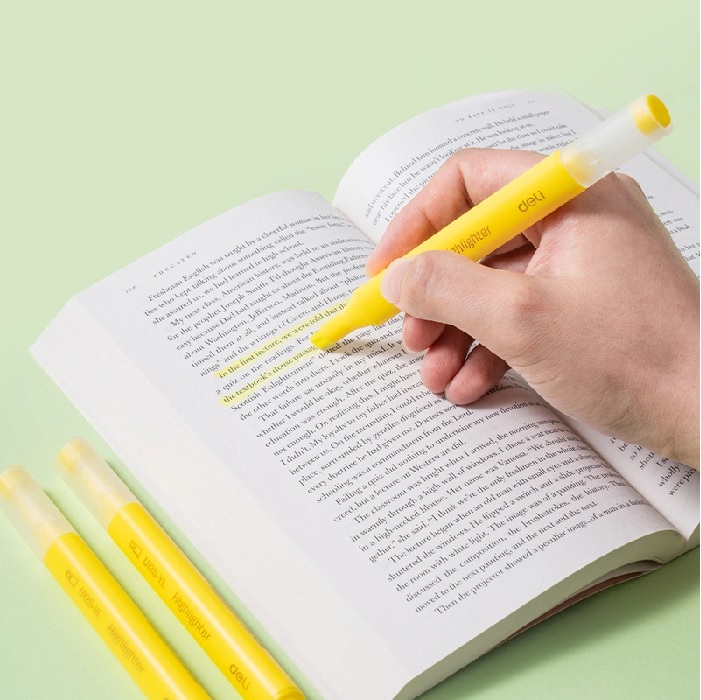 маркер выделительный 1-5 мм Deli EU12S-YL желтый скошенный