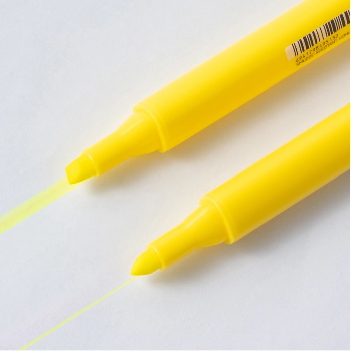 Текстмаркер предназначен для работы на всех типах бумаги, в том числе на бумаге для факсов и копировальных машин. Пишущий узел скошенной формы позволяет варьировать ширину письма. Широкая часть наконечника 5,0 мм удобна для выделения текста, а тонкая 0.6 мм – для подчеркивания. Цвет корпуса соответствует цвету чернил. Флуоресцентные чернила на водной основе быстро высыхают после нанесения и не оставляют следов на обратной стороне бумаги за счет тонкого и равномерного нанесения.