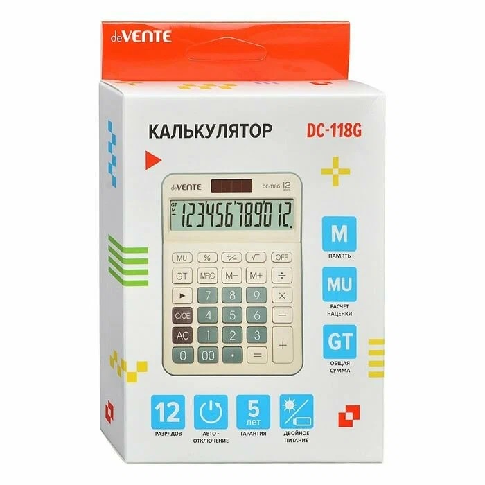 - калькулятор настольный deVente DC-118G 12 разрядный бежевый 4031348