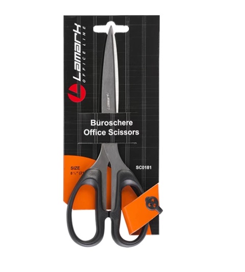 Ножницы канцелярские Lamark из нержавеющей стали. Симметричные пластиковые ручки с удобным захватом обеспечивают комфортную работу с материалами разной плотности. Размер ножниц 15,9 см. Поставляются в блистере с еврослотом.