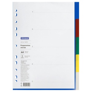 разделитель цветной 5 л. А4 OfficeSpace без индексный пластиковый 366056