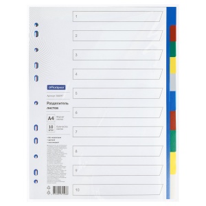 разделитель цветной 10 л. А4 OfficeSpace без индексный пластиковый 366047