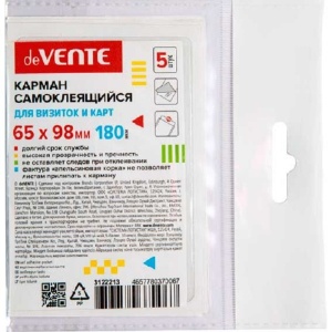 cамоклеящийся карман 65 х 98 мм deVente, 5шт 3122213