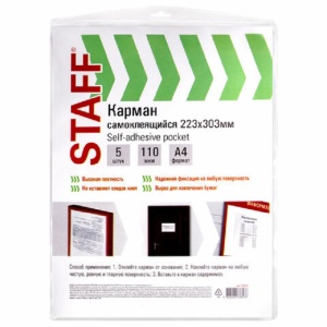 cамоклеящийся карман А4 STAFF 223 х 303 мм 5 шт 270570