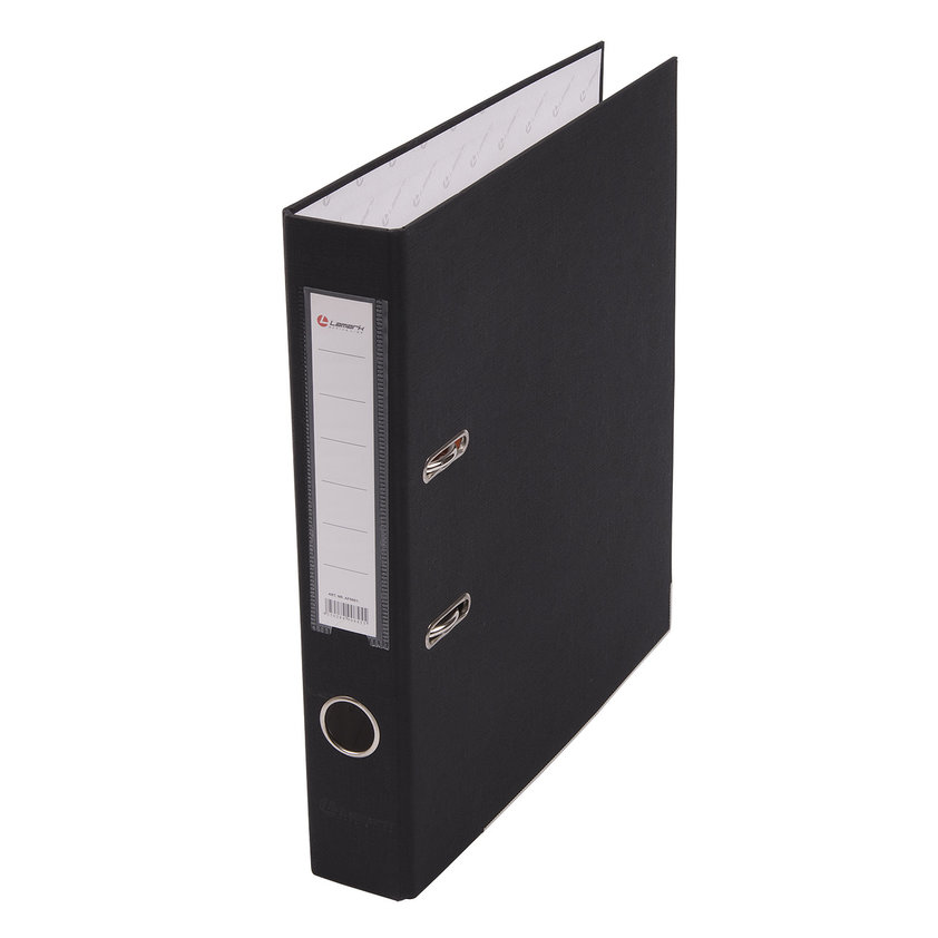 Папка-регистратор LAMARK РР с арочным механизмом изготовлена из плотного картона, с внешней стороны заламинированного полипропиленовой пленкой (РР) с текстурой "лен", внутри оклеена бумагой с алфавитно-цифровым полем для классификации на левой стороне. Прорези на крышке удерживают папку закрытой даже при большом количестве документов. Ширина корешка 50 мм. Вместимость до 300 листов формата А4. Нижние края защищены металлическим кантом, что сохраняет папку при длительной интенсивной эксплуатации. Карман со сменной индексной вставкой на корешке. Цвет черный. Поставляются в разобранном виде по 50 штук в транспортной упаковке.