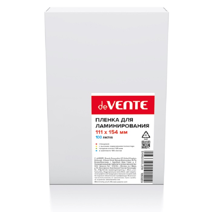 - пленка для ламинирования deVente А6 125 мк 4122501