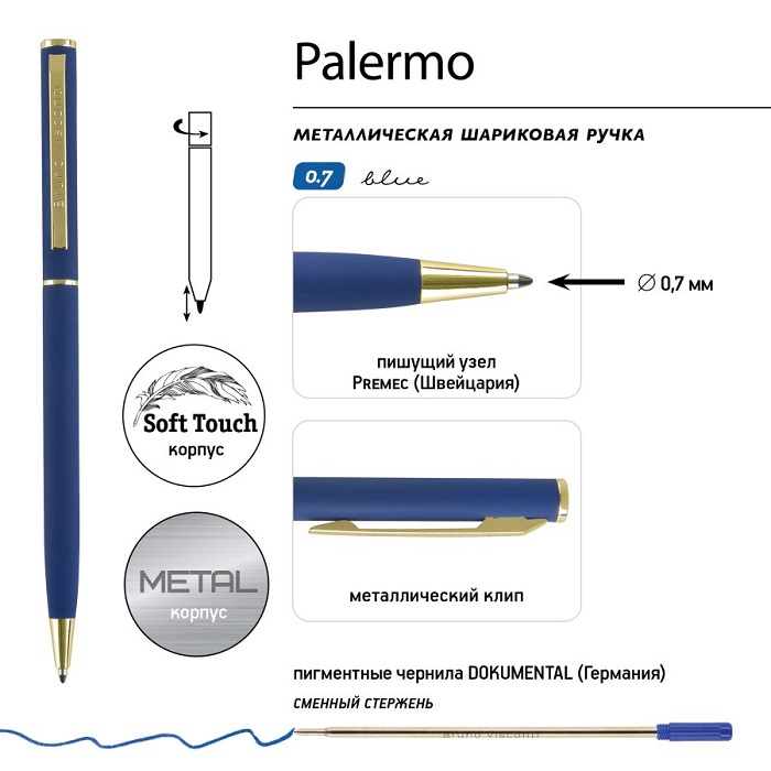 - ручка автоматическая 0,7 мм BV Palermo корпус синий/золото 20-0250/24