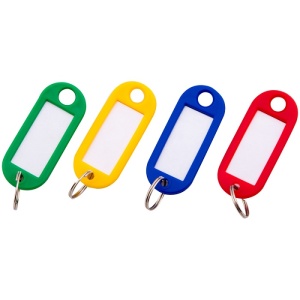 Пластиковая бирка для ключей с металлическим колечком. Окошко для маркировки ключей, бумажная этикетка защищенная прозрачной пластиковой пленкой. Размер текстового поля 28х14 мм, размер бирки 48х22 мм. 50 штук в упаковке.