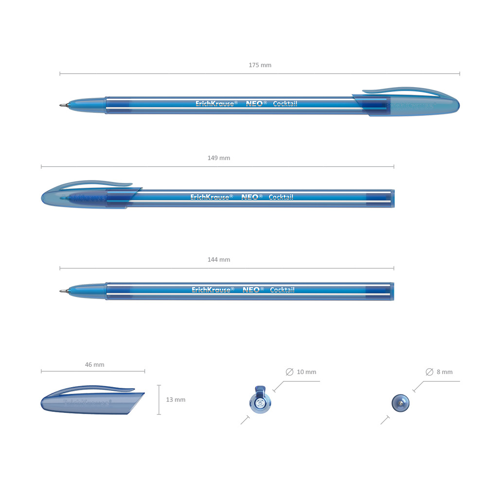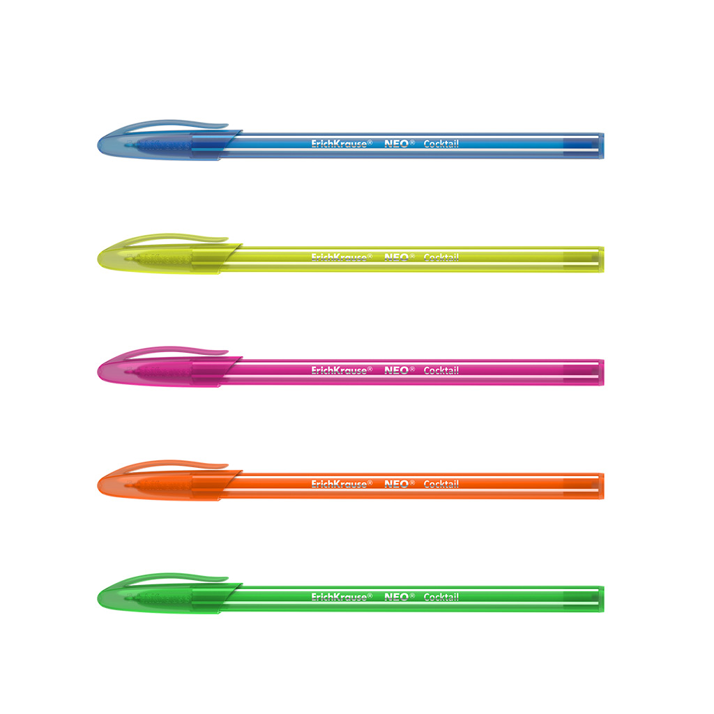 Яркая одноразовая шариковая ручка Stick с утонченным игольчатым типом пишущего узла Fine tip. Ручка имеет матовый полупрозрачный круглый корпус, напоминающий разноцветные трубочки для коктейля, и вентилируемый колпачок. 5-канальный пишущий узел с диаметром шарика 0.7 мм в сочетании с чернилами пониженной вязкости обеспечивает точное и быстрое письмо без усилий. Длина непрерывной линии составляет 1000 м при толщине 0.26 мм, что является высоким показателем в своей категории. Модель Neo® Cocktail имеет элегантную форму и стала одним из бестселлеров в ассортименте тонких шариковых ручек ErichKrause® более чем в пятидесяти странах мира.