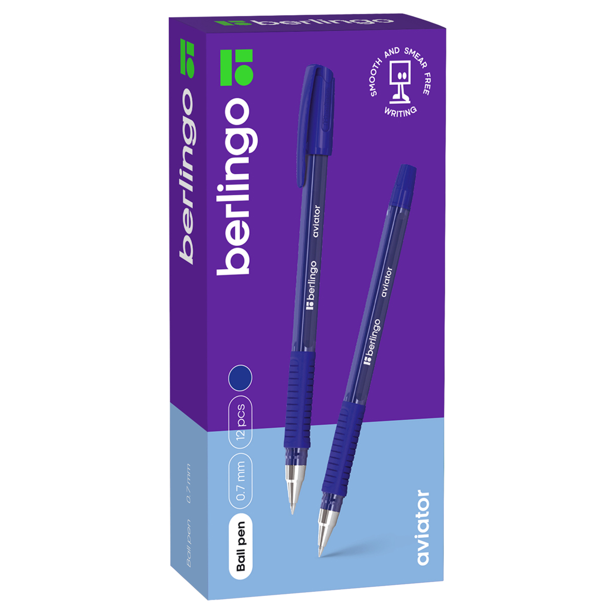 Шариковая ручка Berlingo Aviator — воплощение функционала и качества, один из флагманов ассортимента бренда. Модель выполнена в массивном четырёхгранном корпусе в цвет чернил. Зона захвата оснащена мягким резиновым грипом для предотвращения скольжения во время использования. Крупная текстура грипа и утолщение-упор для пальцев в нижней его части обеспечивают максимальный комфорт. Стержень ручки заправлен светло-синими немажущими чернилами, обеспечивающими аккуратную линию и чистоту письма. Цельнометаллический наконечник способен выдержать самые серьезные нагрузки. Современный технологичный дизайн, оригинальный колпачок с логотипом бренда придают ручке солидный и запоминающийся внешний вид. Ручка поставляется с пишущим узлом 0,7 мм (линия письма 0,5 мм), что делает её универсальной и подходящей для любого стиля письма. Уникальная запатентованная технология Smart Ink обеспечивает лёгкое и приятное письмо за счёт использования чернил пониженной вязкости, специальной конструкции пишущего узла.