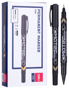 маркер перманентный 0,5-1 мм Deli EU10420 Mate черный двойной пиш. наконечник