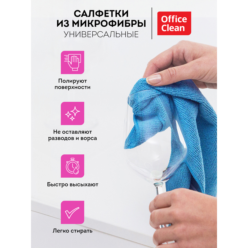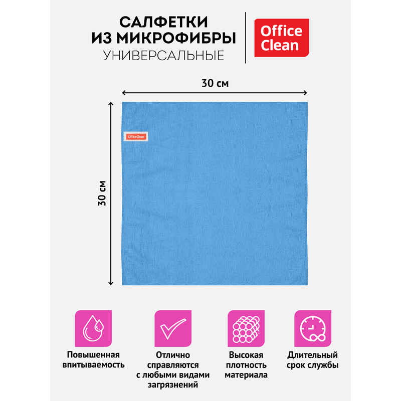 Салфетки универсальные OfficeClean предназначены для удаления пыли, грязи и жира с различных поверхностей: кухонных приборов, стекла, мебели, кафеля. Используется как во влажном так и в сухом виде. Отличная впитываемость. Эффективно удаляет любые загрязнения без бытовой химии, не оставляет разводов. Структура ткани идеально задерживает пыль, вбирая в себя грязные частицы (благодаря статическому электричеству). Имеет длительный срок службы.